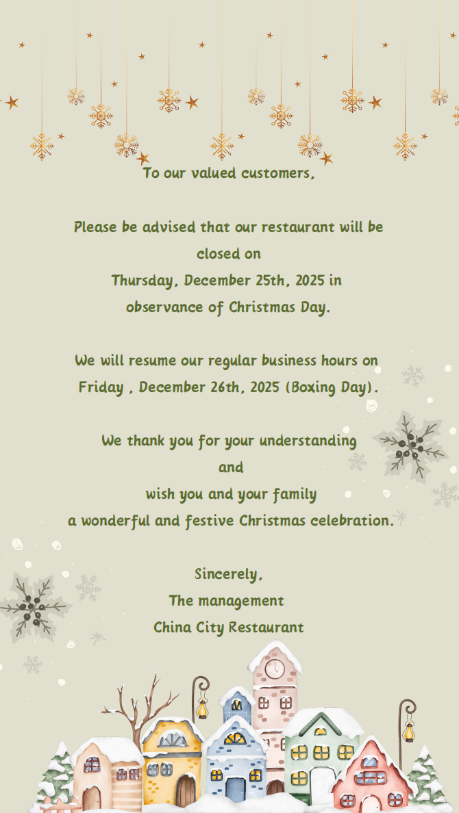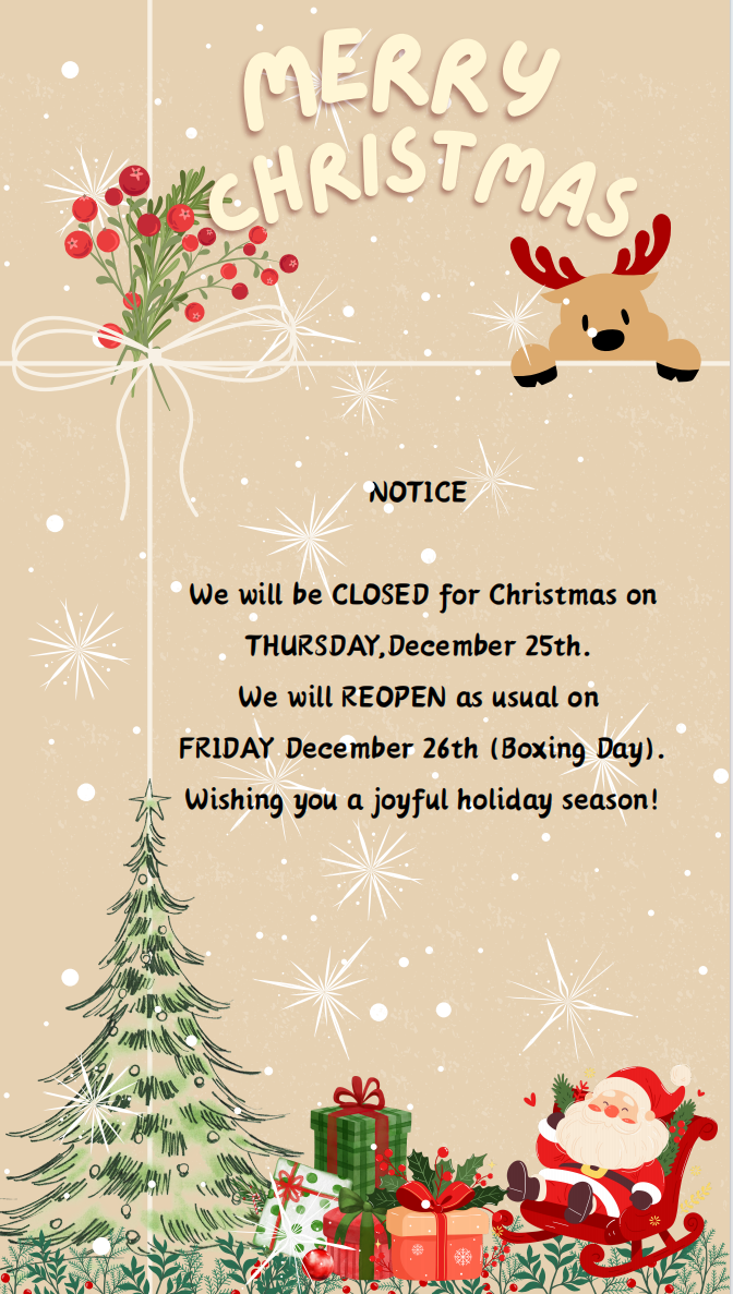 *WE ONLY CLOSE ON CHRISTMAS DAY*